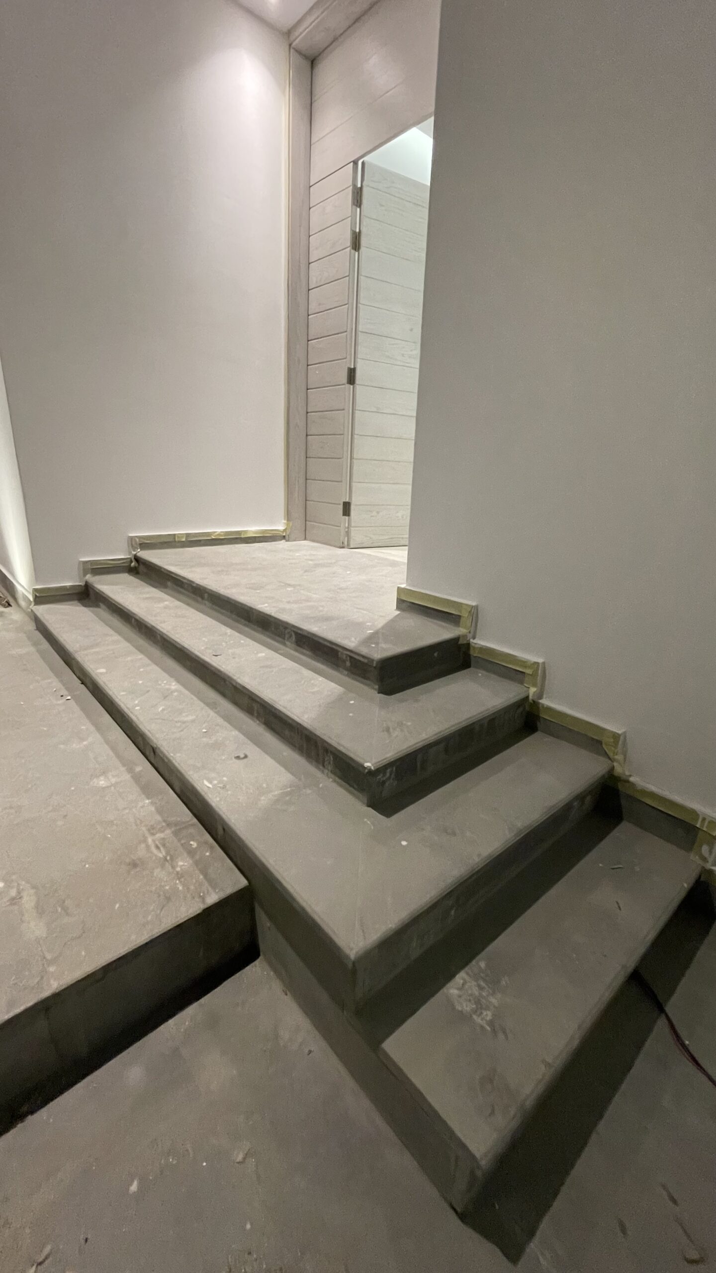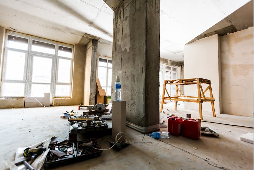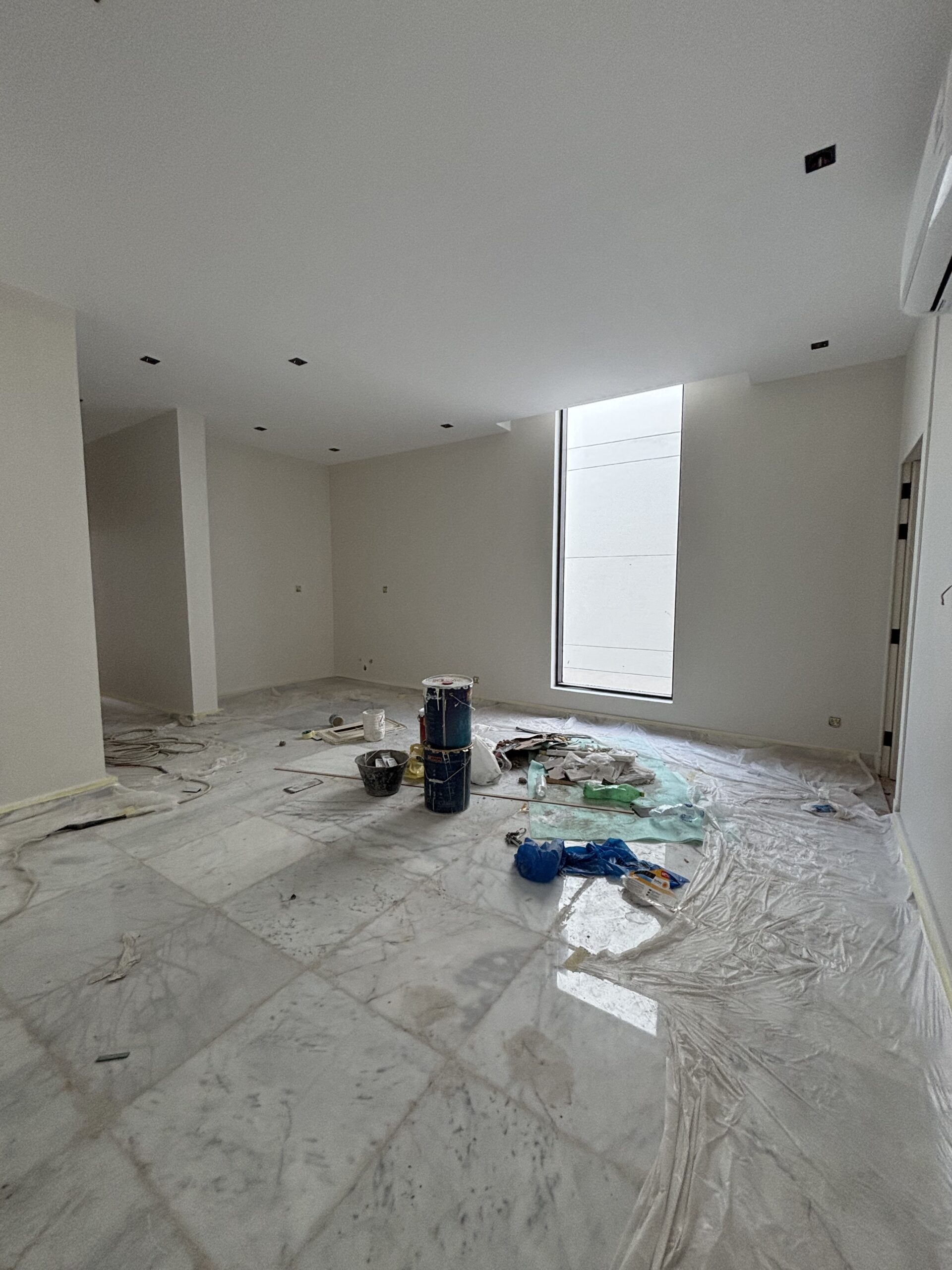 قبل التشطيب: تكون المساحة مجرد هيكل خرساني عاري، مع أسطح غير مستوية وجدران مليئة بالشقوق والأنابيب والأسلاك المكشوفة. الجو العام يكون مغبرًا ومظلمًا، والأرضيات خشنة، والنوافذ والأبواب غير مثبتة بعد. كل شيء يبدو غير مكتمل، كأنه لوحة فنية بقيت في مرحلة الرسم الأولى.
