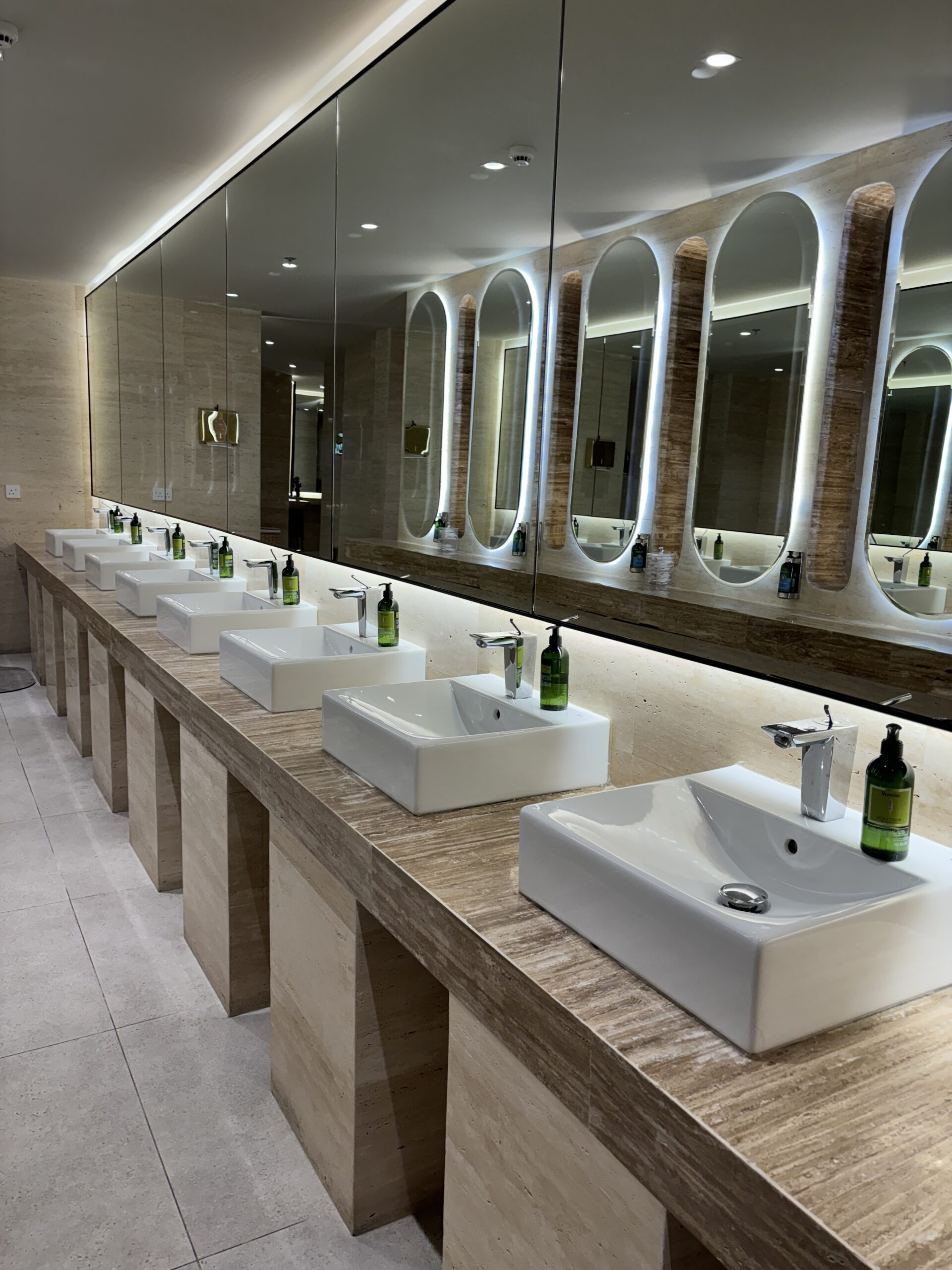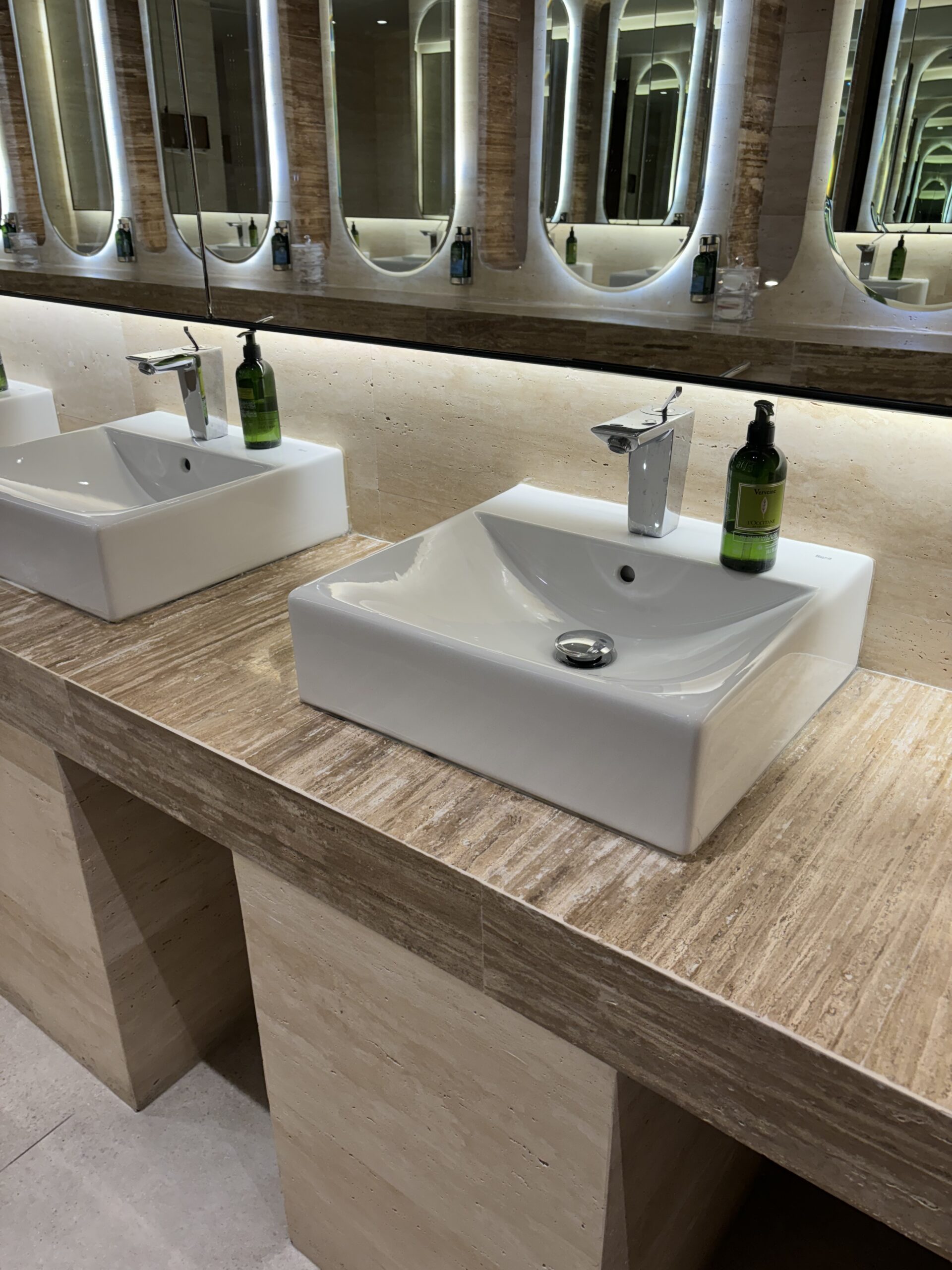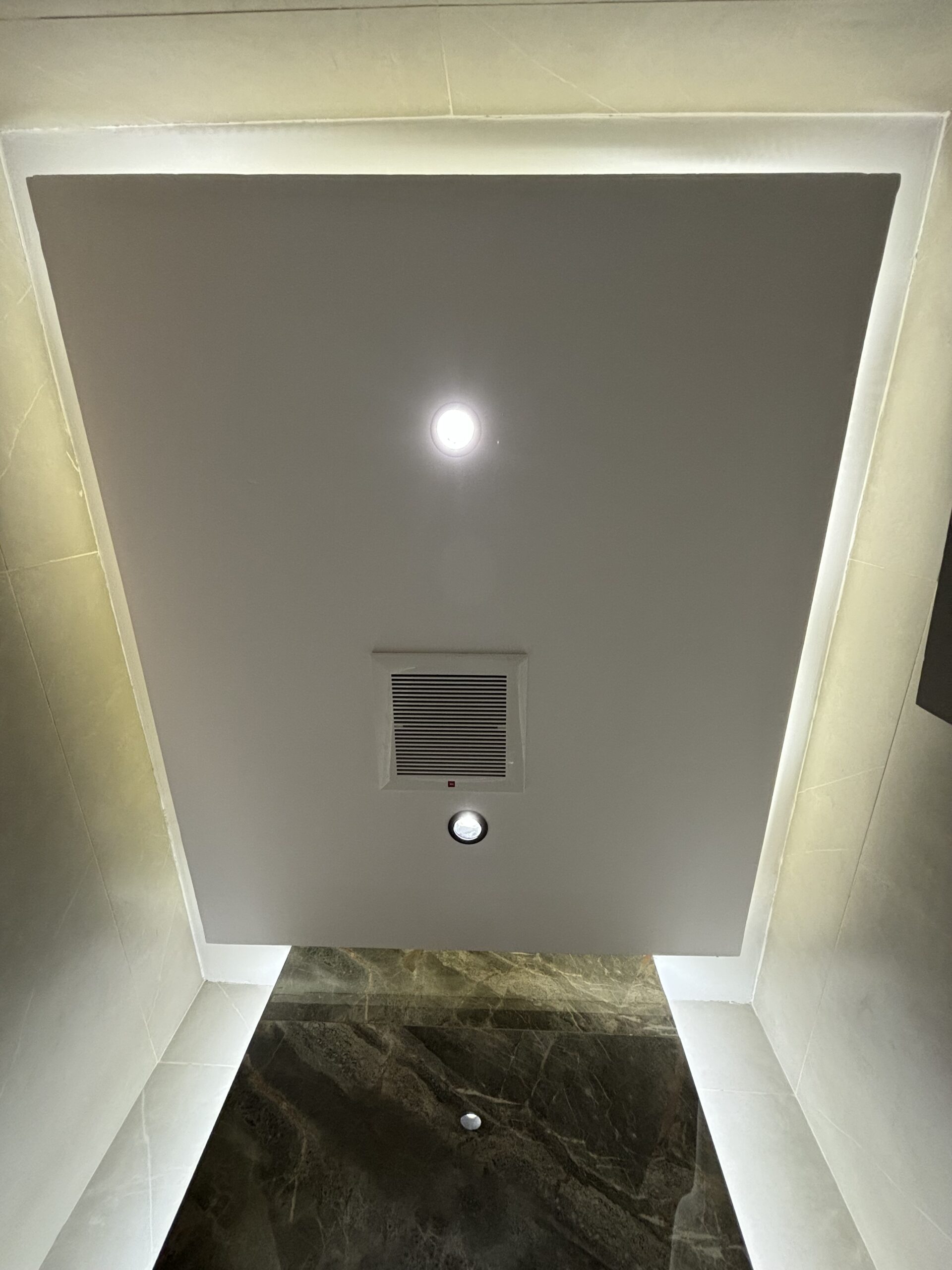 التشطيب الفاخر (لوكس): يستخدم مواد عالية الجودة وتصاميم مميزة (مثل: رخام طبيعي، بورسلان فاخر، دهانات فاخرة مقاومة للعفن، أنظمة إضاءة ذكية، أطقم صحية فاخرة، وتفاصيل دقيقة مثل الكورنيش والأسقم المعلقة المعقدة). التركيز هنا على الرفاهية والمتانة والتصميم الفريد.