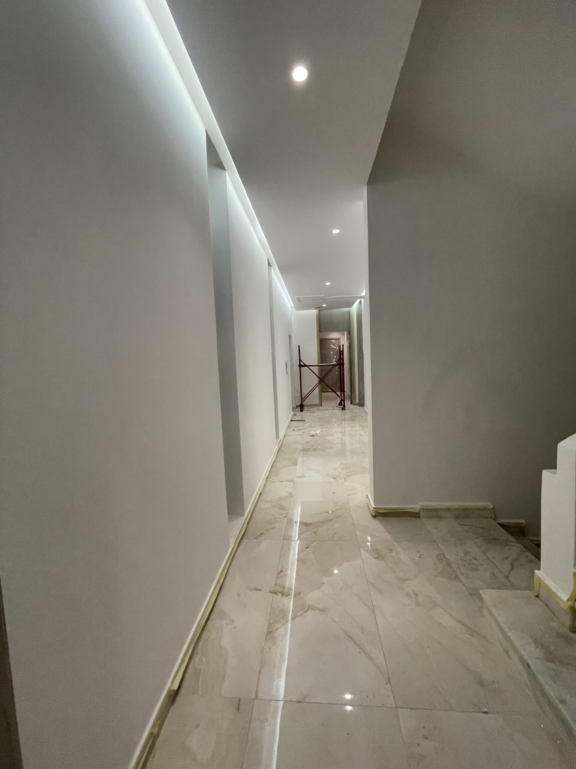 بعد التشطيب: تتحول المساحة إلى عالم مختلف. تلمع الأرضيات (سيراميك، باركيه، أو رخام)، وتستقيم الجدران بدهان ناعم أو ألوان جذابة، وتُثبت النوافذ والأبواب بإحكام. الإضاءة تبعث الدفء، والتفاصيل الدقيقة من تركيب مفاتيح الكهرباء إلى تركيب الأطقم الصحية تضيف روحًا إلى المكان. هنا يصبح البيت جاهزًا لاستقبال الحياة والأحلام.